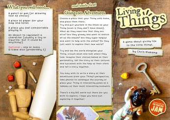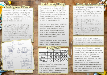 Once your Thing has started to come to life you set them off on an adventure in their new world! Their first adventure could be as simple as finding something to eat or looking for a place to sleep, or as complex as finding new friends or escaping into the mysterious ‘Outside’...